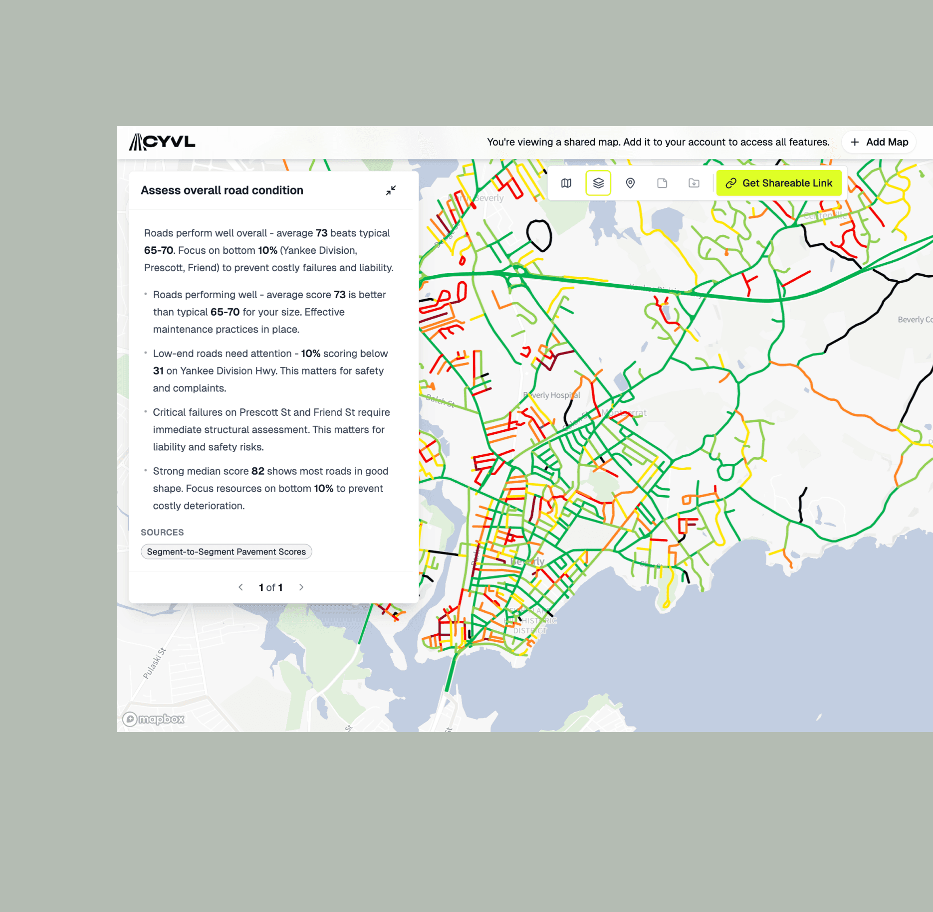 Municipal teams struggled to communicate infrastructure insights across stakeholders (between departments, agencies, private entities, and the public), leading to poor coordination and inefficiencies.